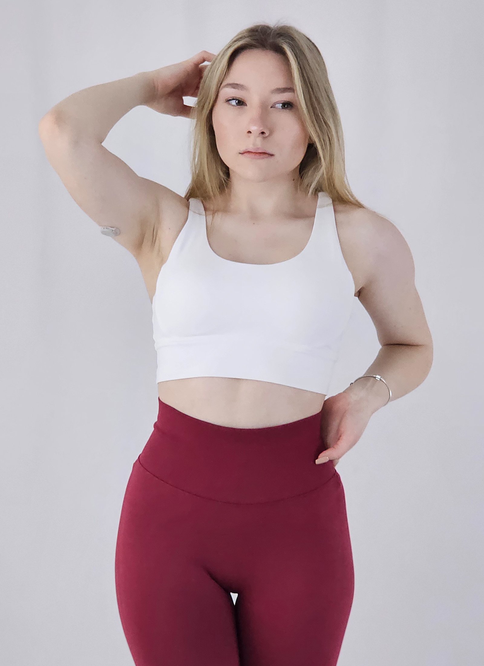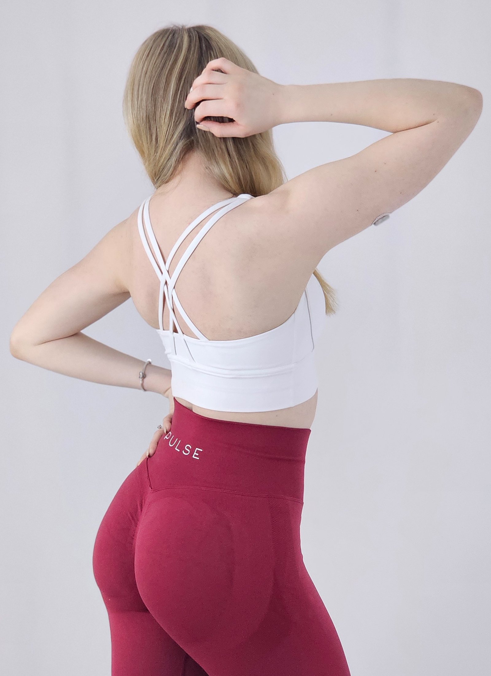 Sportski top s umjerenom podrškom koji elegantno naglašava siluetu. Dvostruke naramenice križane na leđima i ušiveni nevidljivi grudnjak osiguravaju stabilnu potporu, dok mekana, elastična tkanina s uklonjivim jastučićima drži sve na mjestu i pruža maksimalnu udobnost tijekom treninga.